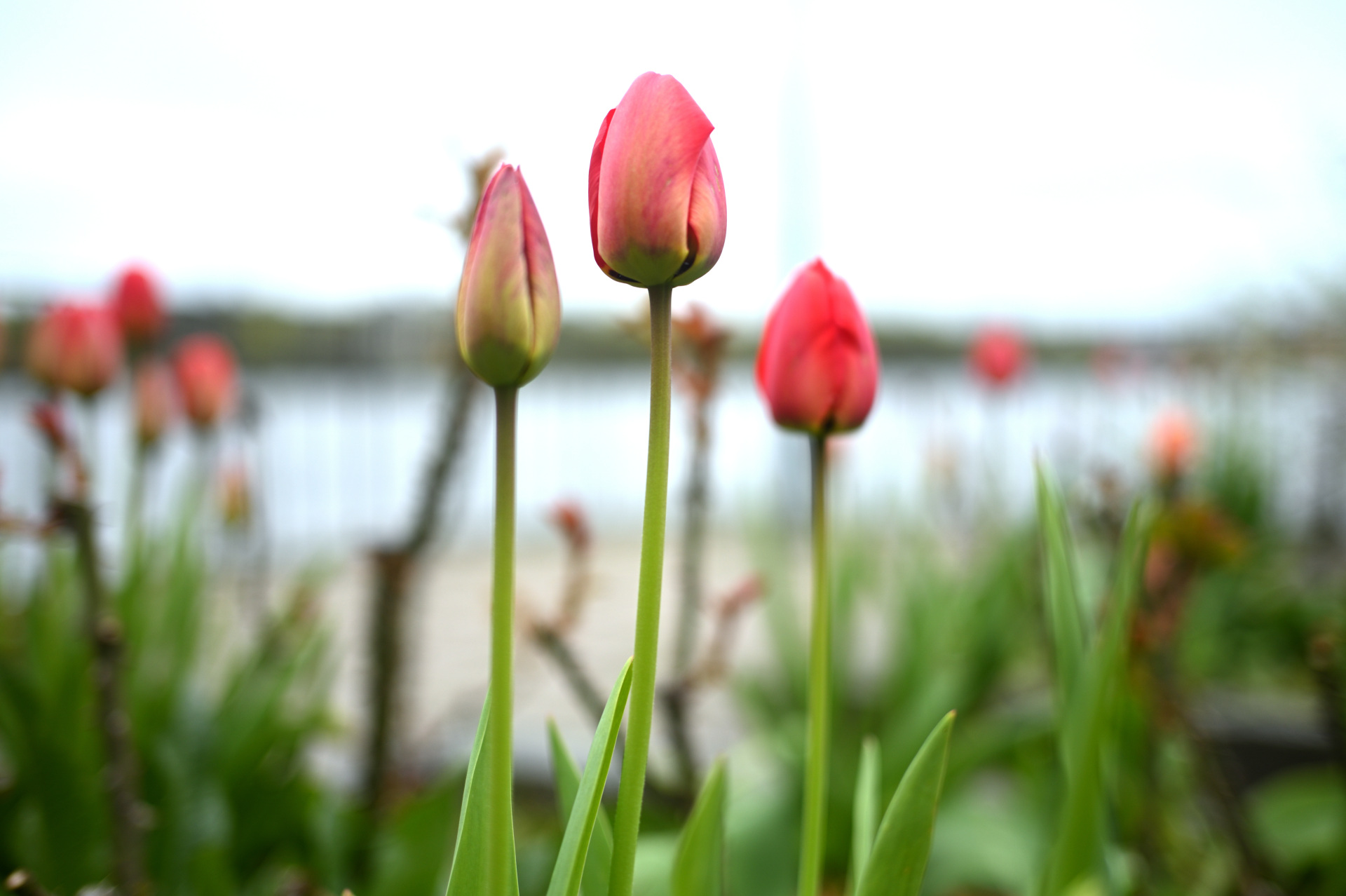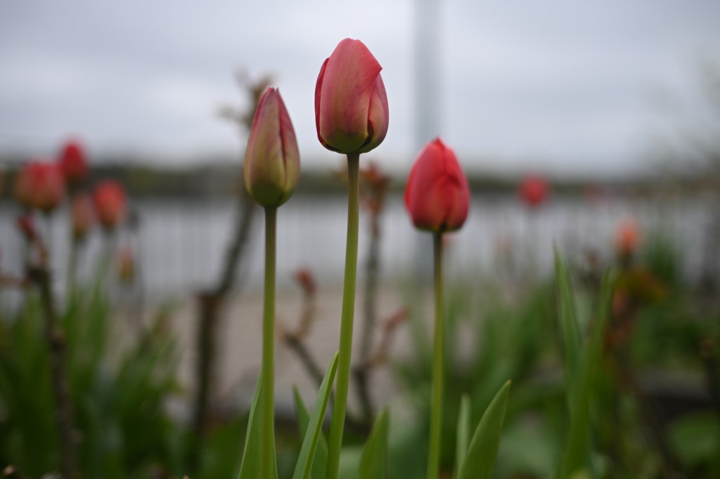 Even though the day was cloudy but without an ‘interesting’ cloudiness, I liked the way this shot turned out. You see a very blurry change in the sky, so you know there is something happening. The tulips in front stand out clearly, with neutral colors and everything else fades in a soft bokeh. Of course I could be post-processing with a neutral highlighting, but that would potentially remove the structure in the sky or with a bit exaggeration. Just for funs sake I add two edited versions, but personally I would stick with the original one.