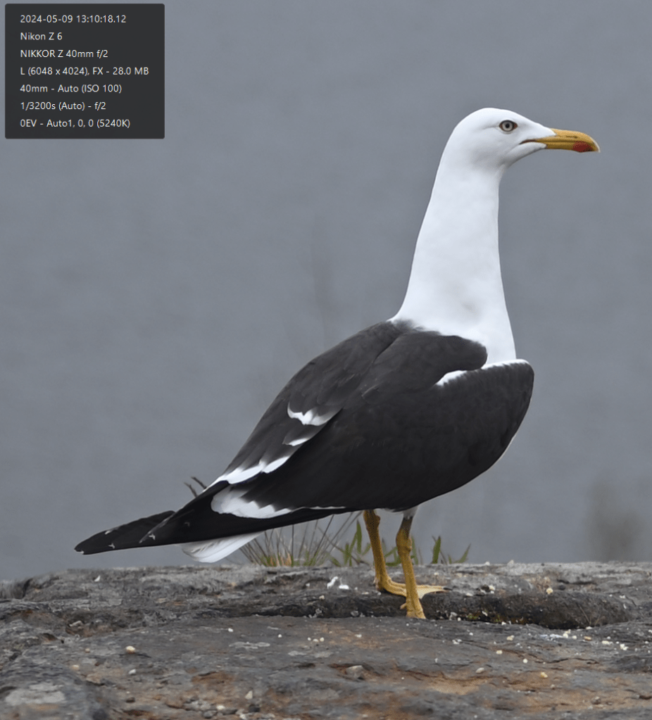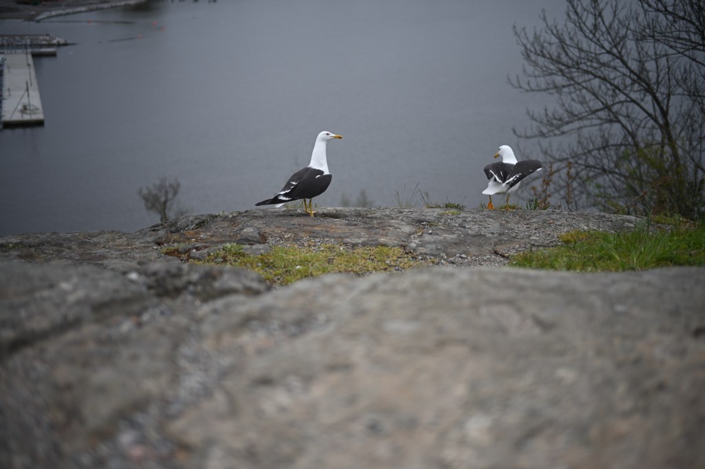 Here you can see the shallow depth of field, even tough the seagulls were some meters from me. They look quite sharp in the total view and both the rock in the foreground and the tree in the background are softened. Let’s look at this cropped 1:1 rendering of the pixels (one pixel on the screen matches one pixel on the sensor).