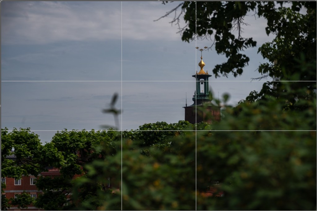 I tried to place the center of the tower close to the line of the golden ratio on the gilded roof at the intersection. It didn’t work out perfectly when I checked it against guides available in Lightroom, but it is not far of. I tried to crop it to make it follow the guides perfectly, but that would have cut the building in the lower left corner and in the end, my feeling was that it made the image worse.